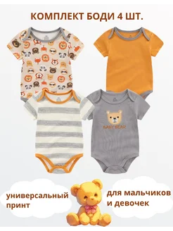 Боди для новорожденных с коротким рукавом 4 шт