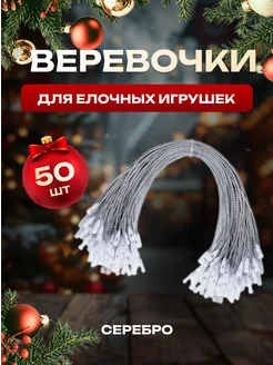 Серебряные веревочки для елочных игрушек с замком 50 шт