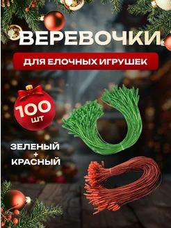 Зеленые веревочки для елочных игрушек с замком 50 шт