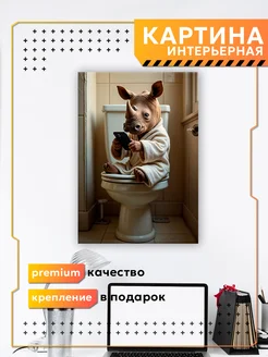 Картина - Носорог в туалет, животное в ванне 40х60 см