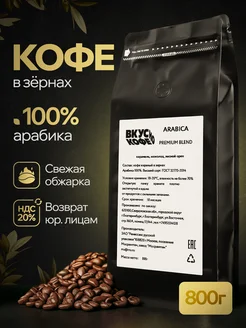 Кофе в зернах 800 г Арабика Premium Blend, 100%