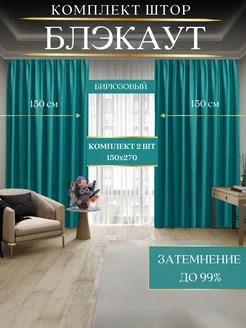 Шторы блэкаут для гостиной 2 шт 150 на 270 светло-бирюзовый