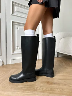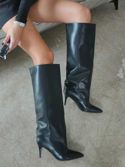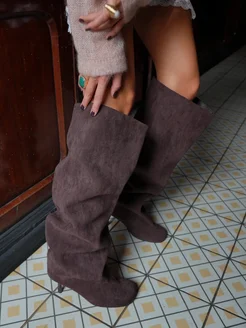Сапоги демисезонные на каблуке трубы слоучи замшевые