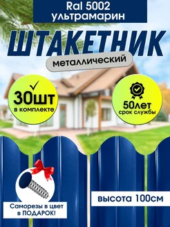 Штакетник металлический для забора 100см Синий RAL 5002