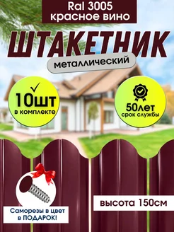 Штакетник металлический Забор 150см Красное вино RAL 3005