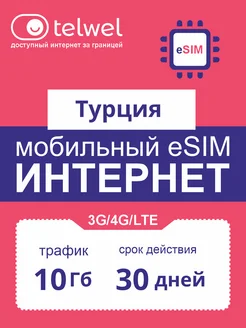 eSIM-карта интернет+мессенджеры в Турция 10Гб 30дней