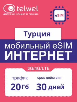 eSIM-карта интернет+мессенджеры в Турция 20Гб 30дней
