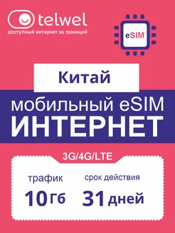 eSIM-карта интернет+мессенджеры в Китай 10Гб 31дней