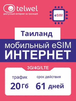 eSIM-карта интернет+мессенджеры в Таиланд 20Гб 61дней