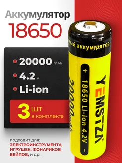 Аккумулятор 18650 Li-ion 4.2v 20000mA 3 шт