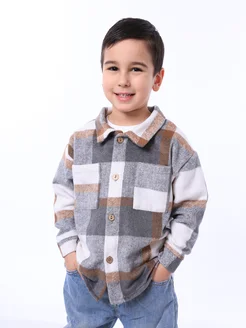 Рубашка теплая детская в клетку оверсайз фланелевая