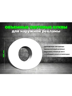 Световая объемная буква O, высота 35 см белая