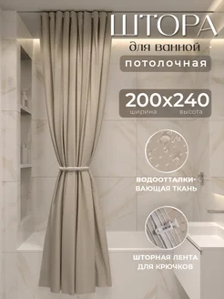 Штора для ванной потолочная бежевая 200х240 Жаккард