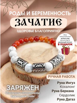 Браслет из натуральных камней с рунами Зачатие