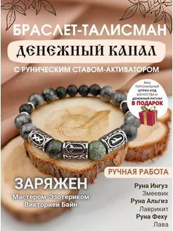 Браслет Денежный канал из натуральных камней с рунами