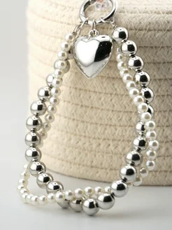 Обвес для телефона и сумки жемчужные бусы с сердцем - брелок
