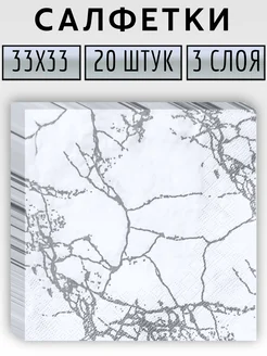 Праздничные салфетки бумажные на стол Серебряный Мрамор