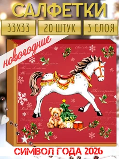 Салфетки бумажные новогодние Лошадь Символ Года 2026