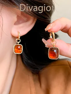 Серьги бижутерия с натуральным Янтарем Майяра