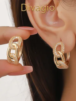 Модные серьги-кольца с искусственными Цирконами