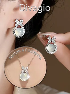 Серьги с лунным камнем бижутерия