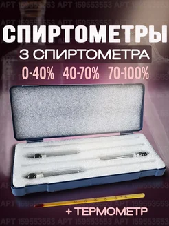 Спиртометры (ареометры) 3 штуки и термометр в кейсе