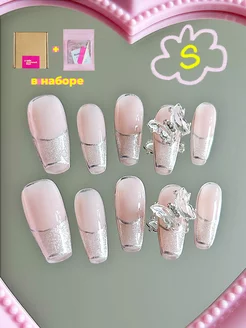 Накладные ногти с дизайном акриловые длинные балерина XS