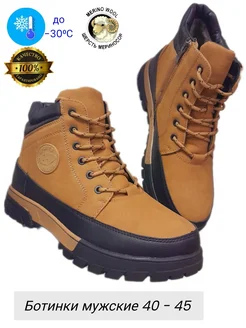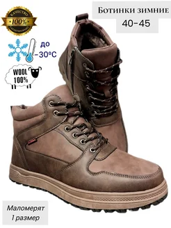 Ботинки зимние коричневые высокие с молнией шерсть натур