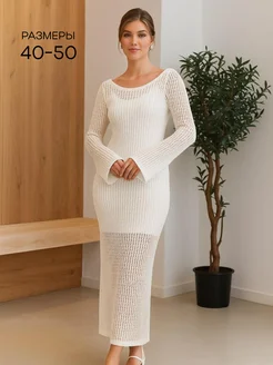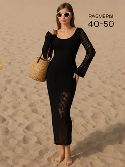 Вязаное платье - сетка с длинным рукавом на лето