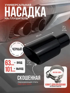 Насадка на выхлоп 63>101мм черная скошенная с хомутом