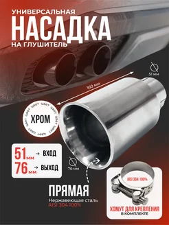 Насадка на выхлоп 51>76мм хром прямая с хомутом