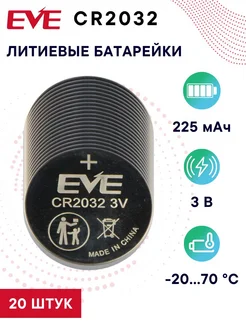 CR2032 Литиевая батарейка (таблетка button), Li-MnO2, 20 шт