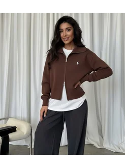 Свитер кардиган с горлом на молнии вязаный трикотажный