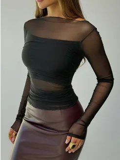 Лонгслив прозрачный сетка кофта облегающая с драпировкой