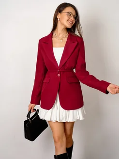 Пиджак классический приталенный удлиненный оверсайз с поясом