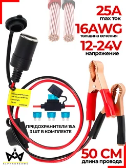 Удлинитель-переходник с крокодилов на прикуриватель 0.5 м