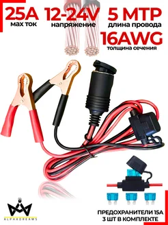 Удлинитель-переходник с крокодилов на прикуриватель 5 метра