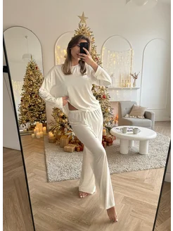 Костюм домашний пижама клеш для дома из хлопка Skims