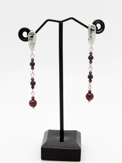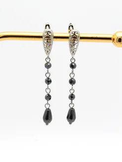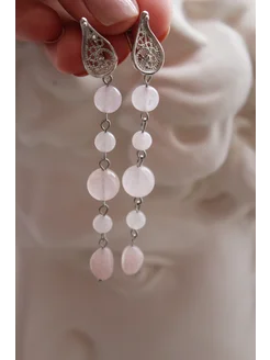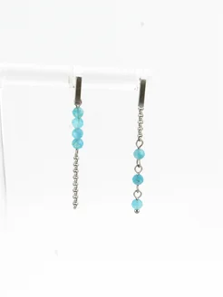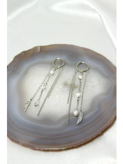 Серьги длинные из кахолонга с перьями и цепочками из стали