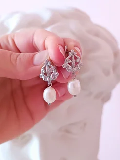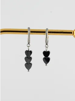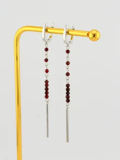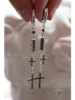 Серьги длинные с натуральным гематитом крестами и цепочками