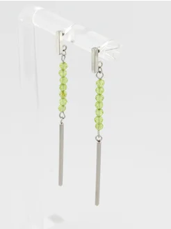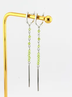 Зеленые серьги-гвоздики длинные с натуральным хризолитом