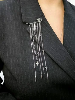 Брошь-булавка с длинными цепочками подвесками и гематитом