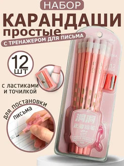 Карандаши простые для школы с ластиками набор 12 штук