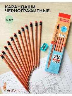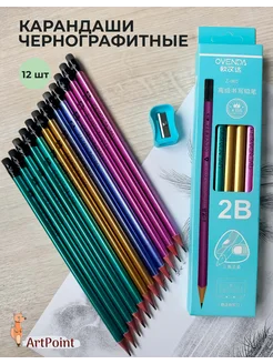 Карандаши простые мягкие для школы с ластиками набор 12 штук