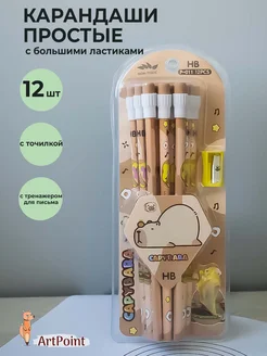 Карандаши простые для школы с ластиками и точилкой набор