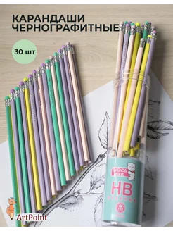 Карандаши простые для школы с ластиками набор в тубе 30 штук