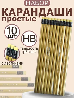 Карандаши простые для школы и офиса с ластиками набор 10 шт