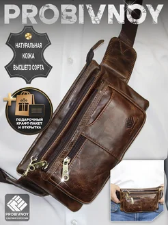 Сумка через плечо из натуральной кожи, поясная коричневая