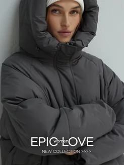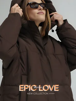 Куртка зимняя удлиненная оверсайз с капюшоном