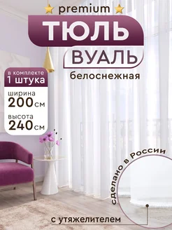 Тюль в гостиную спальню длинная с утяжелителем 200х240